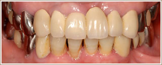前歯2本に大きなむし歯があります。その処置後、セラミッククラウンを装着します。